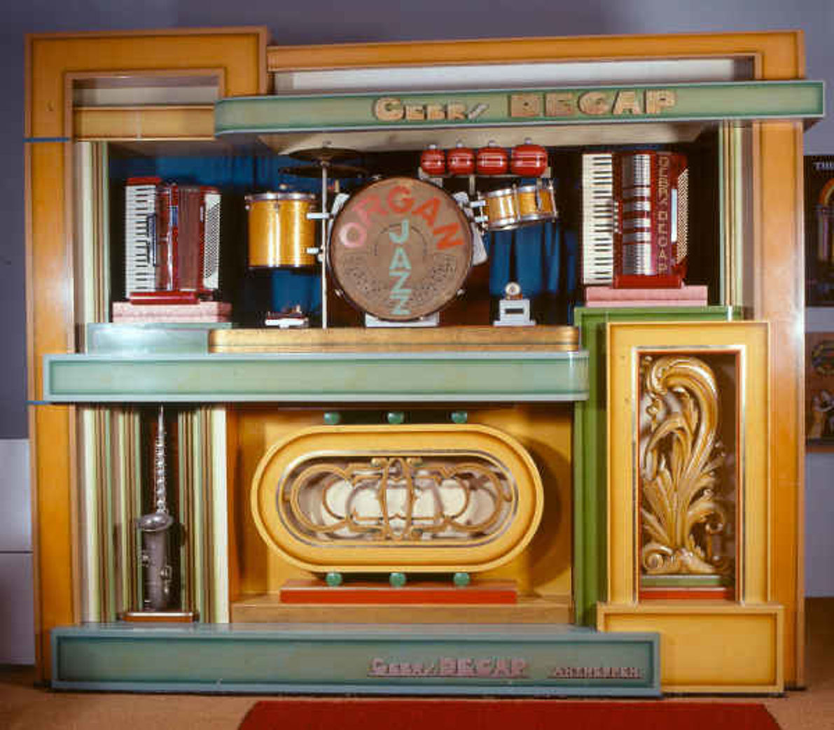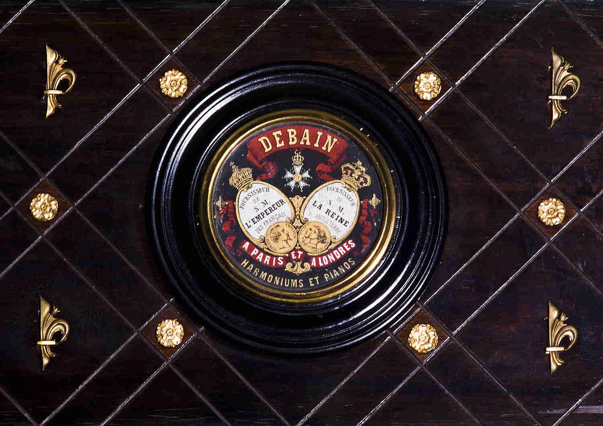 Titelbild Broschüre Detail Concert- & Tanzautomat, Symphonionfabrik AG, Leipzig, um 1910. Standautomat, mit Lochplatte, Doppelstahlkamm, Münzeinwurf, Inv. Nr. 87/137